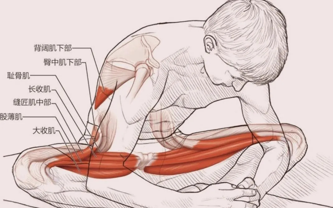 技巧就是,两个脚掌相合,腿弯曲,然后膝盖向地上压,同时屁股尽可能靠近脚后跟,上半身挺直靠近脚刚开始做有酸爽版的痛感哦。
